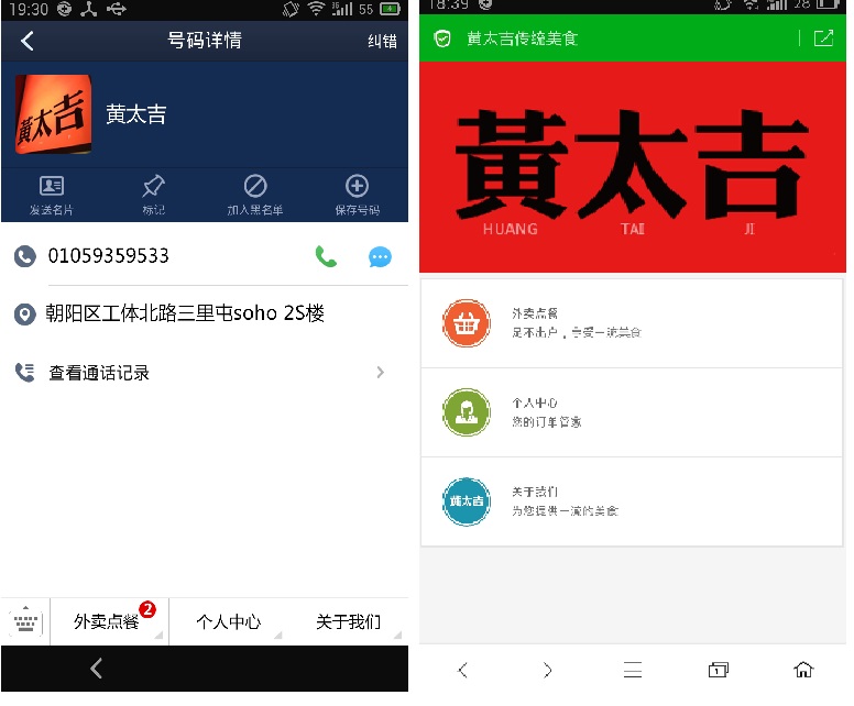 以最近人氣火爆的黃太吉煎餅為例,顧客在給黃太吉打了一個(gè)送餐電話后,即自動(dòng)關(guān)注了黃太吉來(lái)店。隨后,黃太吉主動(dòng)推送最新商品服務(wù)信息,顧客在360通訊錄中看到未讀信息,點(diǎn)擊進(jìn)入后即可查看到黃太吉其他店鋪的相關(guān)信息,并可在線訂餐及商家導(dǎo)航。值得關(guān)注的是,當(dāng)中午訂餐熱線繁忙時(shí),來(lái)店會(huì)提醒用戶轉(zhuǎn)為在線訂餐,并實(shí)時(shí)推送在線訂餐的優(yōu)惠信息,從而避免了因電話不通而造成的客戶流失。