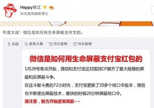 以下為網(wǎng)友整理的《微信是如何用生命屏蔽支付寶紅包的》全文: