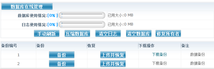 然后點“備份”,成功后點“下載備份”,即可將該bak格式的數(shù)據(jù)庫備份下載到您本地的電腦上。