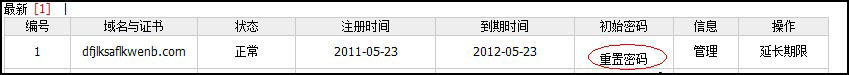 會(huì)返回到域名管理列表后,再點(diǎn)擊“重置密碼”,即可用新的密碼來登陸管理域名了。如圖: