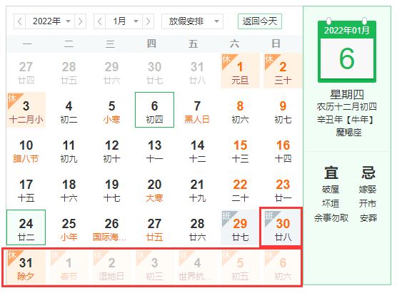 調休安排:2022年1月29(星期六)上班